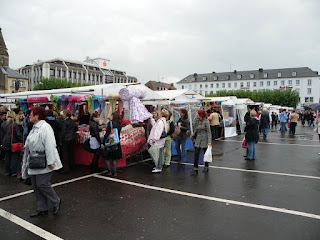 I couldn't have gone to Europe without stopping at one of these markets. We went to the Saarlious one and BOY did Mollie and I have fun!! Mollie wanted to buy all the expensive fabric LOL but in the end she decided on a couple metres of some yellow spotted cotton and some pink babushka fabric. I bought some drill, cotton, a little knit and a magazine. Everyone was so nice to us, and even tried to talk English to me. It was a blast!!