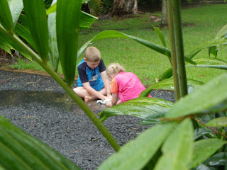 And here they are..playing with their off road lego vehicles through the puddles in the rain.