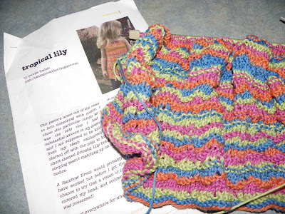 I am joining in over at Crafty Mamas in a knit a long. I would really like to finish this Tropical Lily top for Mollie. It is such a sweet pattern and the part I have done, I am really happy with!!